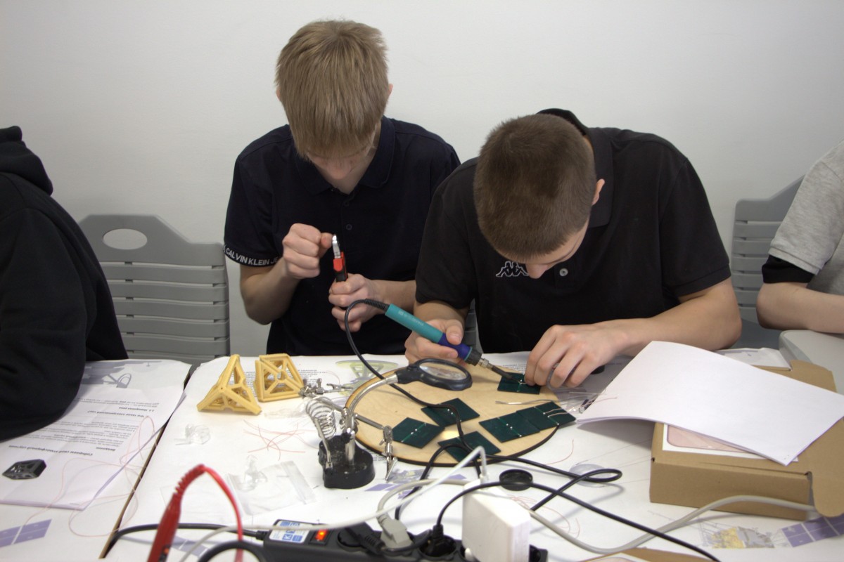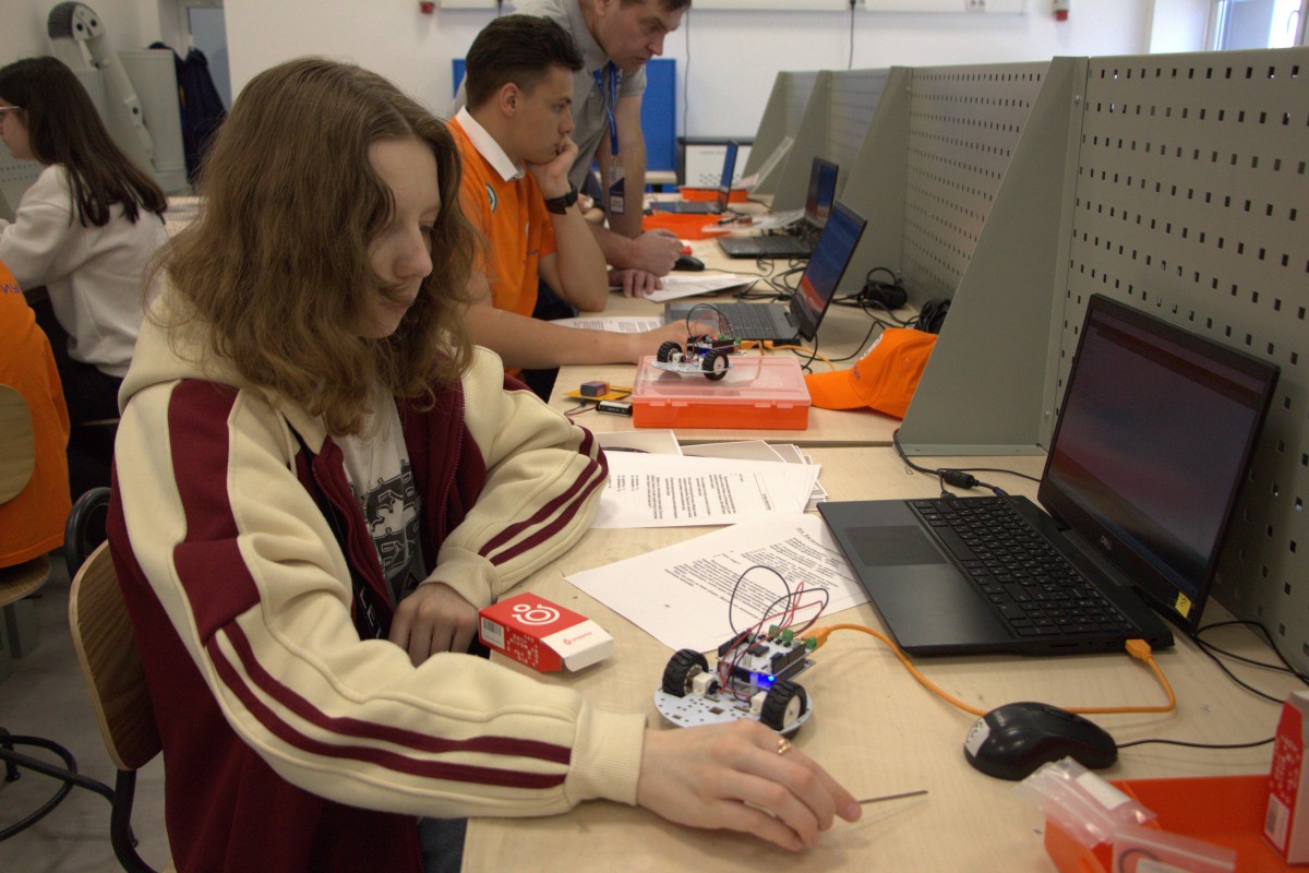 На площадке кипела настоящая инженерная работа — ребята собирали действующие атмосферные спутники из конструктора «Спутник 6.1». Некоторые школьники за несколько часов приобрели настоящий инженерный навык, который останется с ними на всю жизнь – научились паять. Ребята настраивали микроконтроллер ESP32, настоящий «мозг» спутника. С его помощью юные конструкторы смогли «оживить» свой аппарат: датчик BMP280 передал первые данные об атмосферном давлении и температуре, а спутник начал «чувствовать» собственное напряжение — показания с суперконденсаторов демонстрировались на экране. Электроника «ожила», и это был момент настоящего инженерного триумфа.