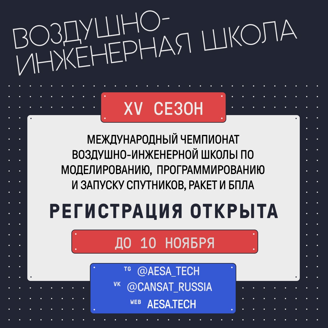 Воздушно-инженерная Школа - это международный чемпионат, где молодые таланты могут проявить себя в инженерном творчестве и посоревноваться в моделировании, проектировании моделей спутников, твердотопливных ракет и беспилотных летательных аппаратов.